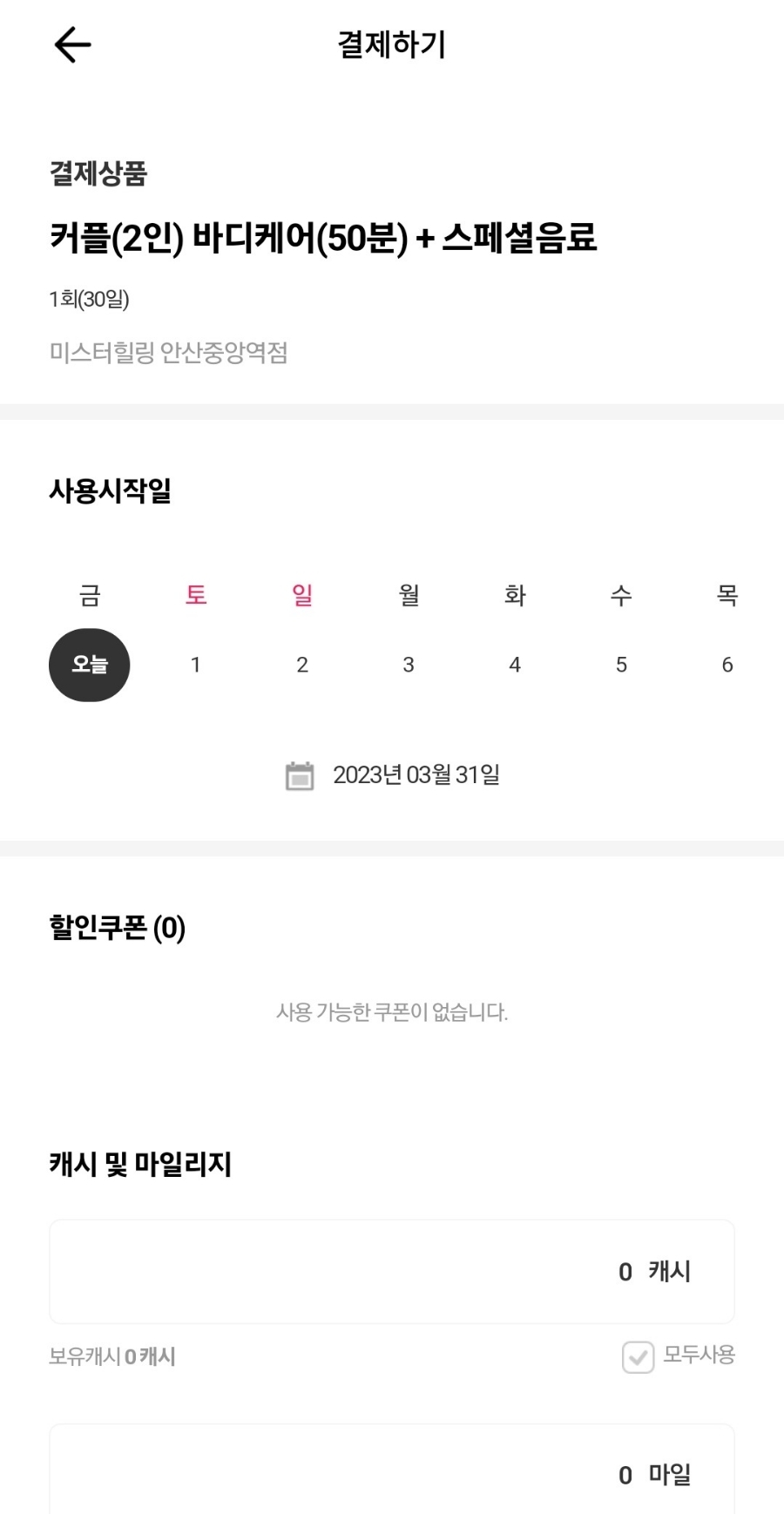 사용할 날을 고를 수있게 달력이 나온다
