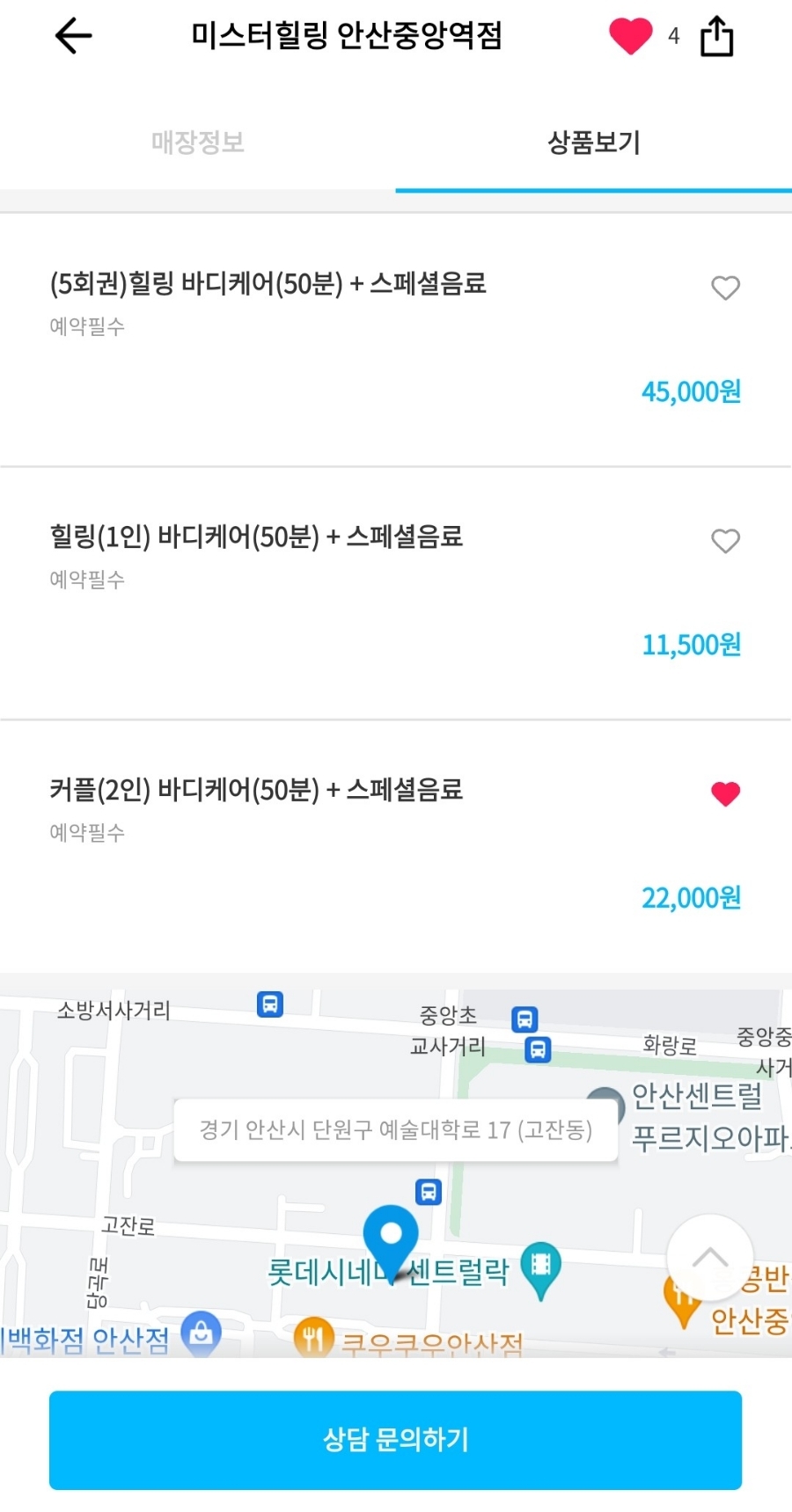 에브리핏에서 미스터힐링안산 을 검색하면